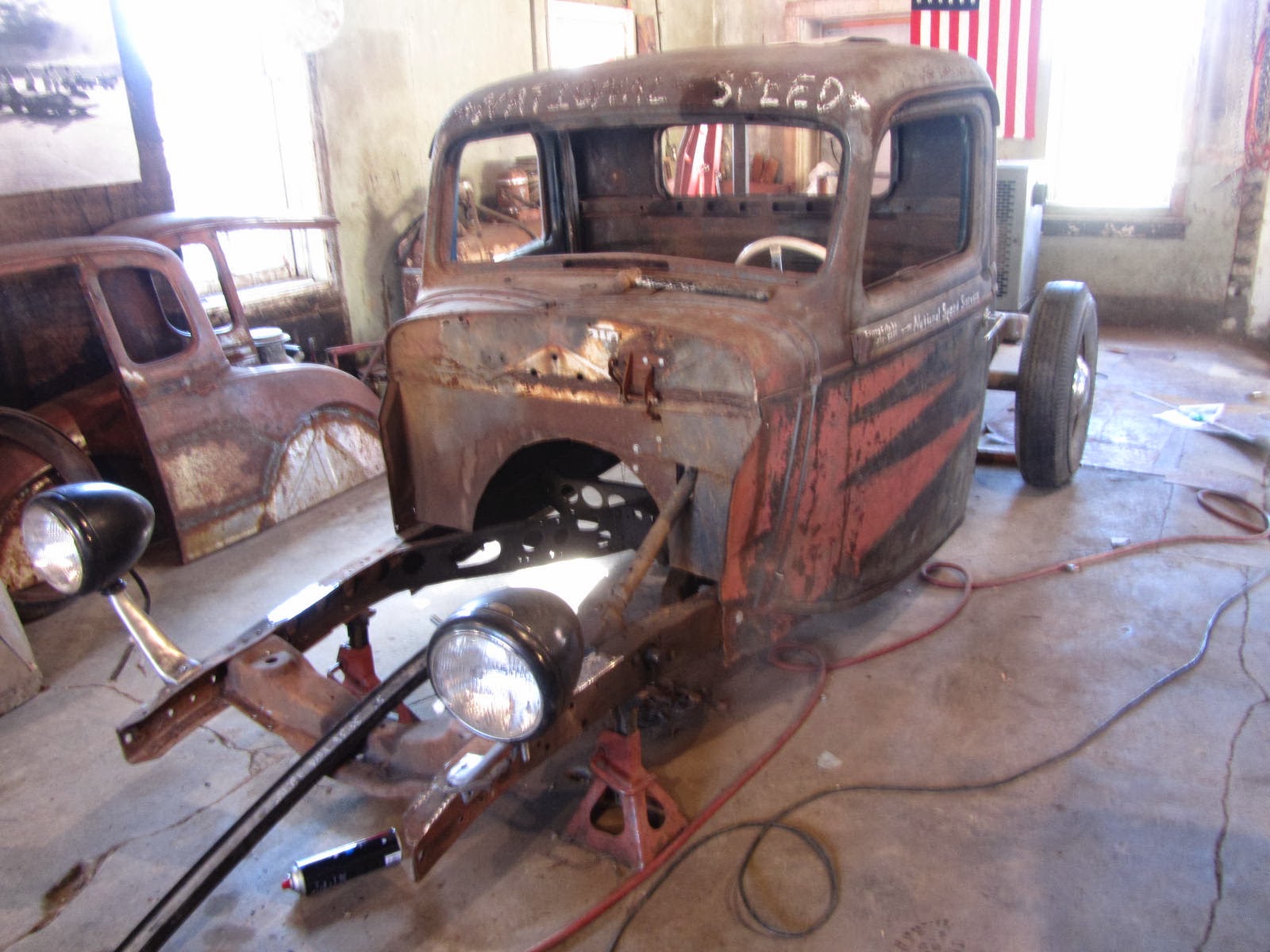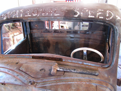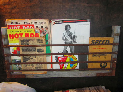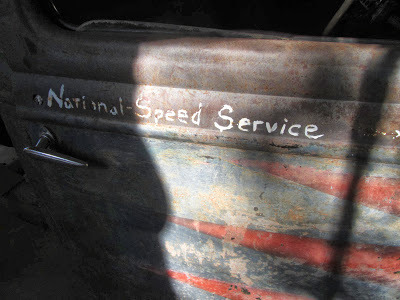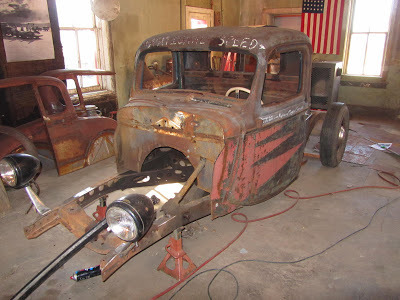 I went back to Chase County, Kansas to revisit my favorite speed shop, S.E. Schroer & Co, in downtown Strong City, heart of the Flint Hills. The Plymouth and the 5-window roadster were featured in a post last week. This week I heard them fire up and saw Señor Schroer hurtling around town in the roadster, which is a speed machine. He is a man with a powerful aesthetic, which you see in his cars and in his shop, where there are some intriguing works-in-progress. Man, I wish I was driving the Plymouth back to Maine...