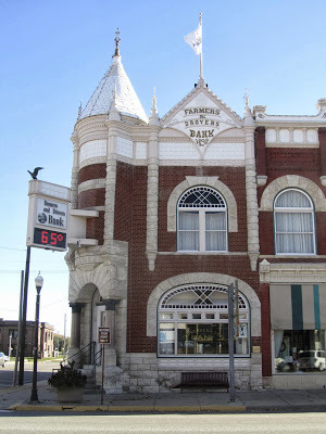 The best buildings in Kansas seem to have absorbed a lot of Frank L Wright influence, especially the way they use the local stone, which is think a limestone, often tawny-colored. There are many long lean prairie-style houses and commercial buildings dating I think from the 50s and 60s.This bank isn't exactly prairie-style, and its quite recent, but I think it's an admirable building. I like the use of neon, as well.
