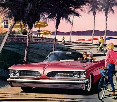 I admire Pontiac's ad layouts in this era. They made the wide-track cars even wider than they were, so the square-jawed men and elegant women seemed cool, but sort of tiny. The men all look like astronauts on holiday; though there wouldn't be any astronauts for a year or two. The women look like astronauts' wives, as they would be profiled in Life magazine, later in the Sixties.