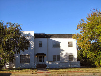 The best buildings in Kansas seem to have absorbed a lot of Frank L Wright influence, especially the way they use the local stone, which is think a limestone, often tawny-colored. There are many long lean prairie-style houses and commercial buildings dating I think from the 50s and 60s.This bank isn't exactly prairie-style, and its quite recent, but I think it's an admirable building. I like the use of neon, as well.