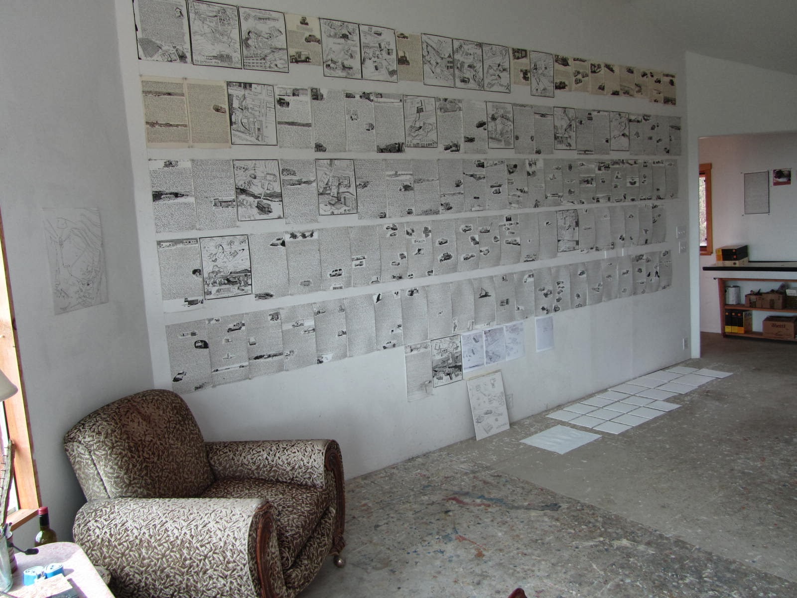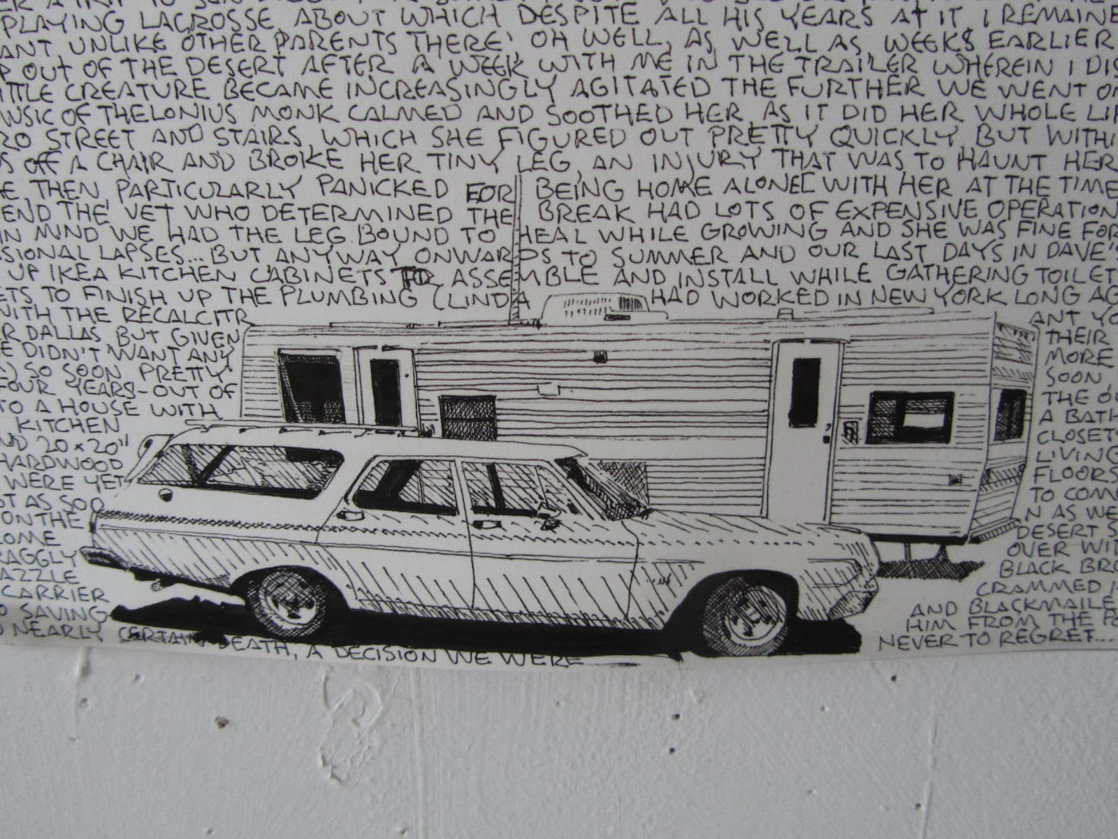 "I am making a book consisting of the 89 "Auto Biographies" [http://www.mikesmooreptgs.com/autobios_2013_stan/index.html] plus 22 drawings of "Every House I Ever Lived in from Memory" [http://www.mikesmooreptgs.com/every%20house/index.html] to be published under my Wall Spring Press imprint sometime quite soon, September of 2013 most likely. Together these two series comprise an idiosyncratic, illustrated account of my life in cars, houses, and, increasingly, life experiences [for those interested enough to decipher the text] up to the present day. On the other hand, taking text as texture, there are close to three hundred little line drawings floating among the scrawled letters that should be pleasure enough." --Michael S Moore
