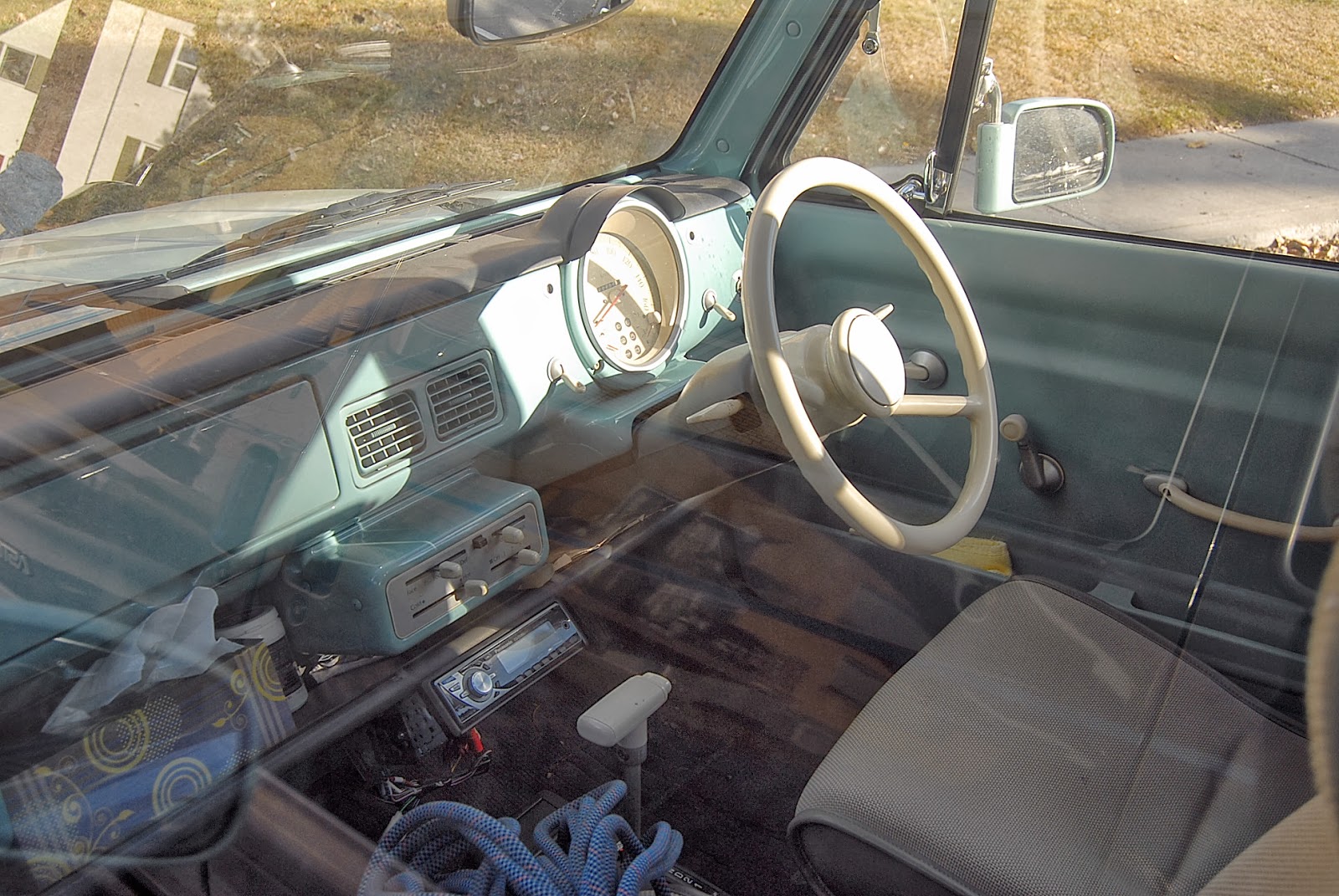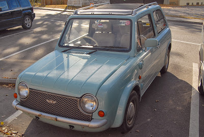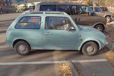ed. note: The Pao was actually a retro design produced by Nissan for about six months in 1989. I wonder how this one found its way to the Canadian Rockies. One sees a lot of imported right-hand drive Japanese 4wd vans in Western Canada...check that link above.