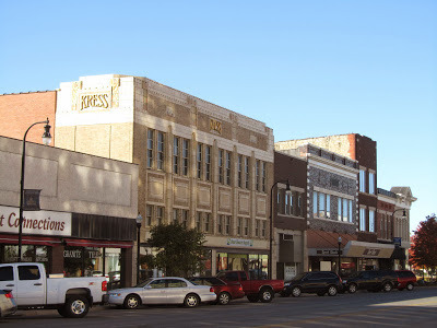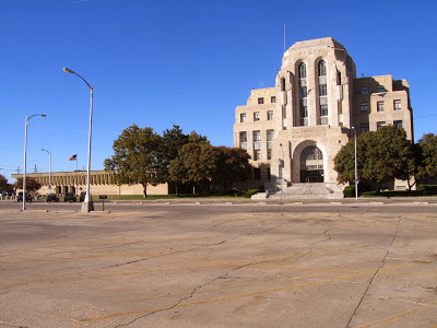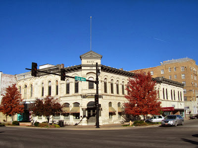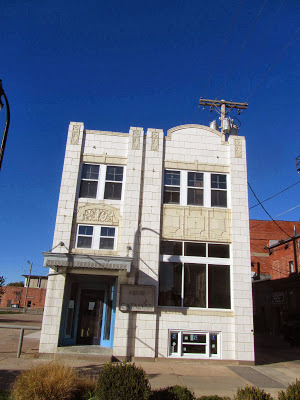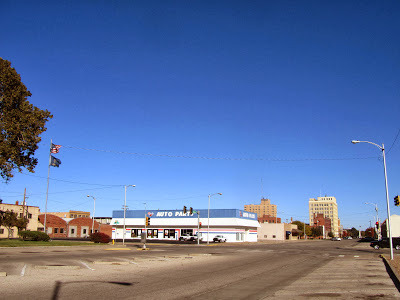 The writer Josh Barkan suggested I go have look at Hutchinson, Kansas. So on a bright October afternoon, I did. Interesting town. I suspect there was a huge boom there when the price of wheat was high, from the 1900s to 1929. Hutchinson was a railroad town when that meant something, and probably a regional banking center. Wheat farmers need banks. Looks like during the last eighty years the town's ambitions have sort of collapsed; everything seems a little damaged, shrunken. Still, those proud high buildings: startling for a town its size. Downtown has somewhat revived, recently--there are bookstores, and antique shops, but it's just hanging on. The neighborhood streets and alleys which I'll cover in another post, reminded me of the mise en scene in Arthur Penn's 1967 film Bonnie and Clyde: overgrown back alleys and weathered frame houses could have been a Depression-era town anywhere on the southern prairie or plains, Missouri to Texas.