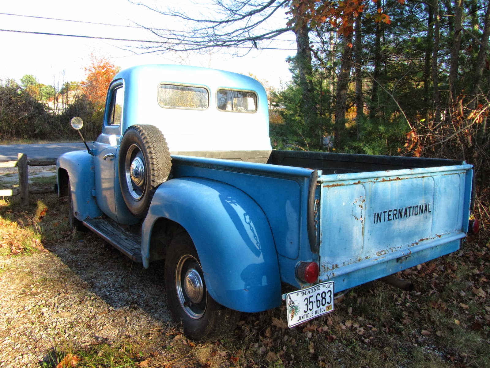 I have been seeing a lot of these lately, including one of my all-time favorite trucks in Colorado Springs last month. They have lean and simple lines and I guess were/are pretty hardy. I remember trying to buy one when I was a kid working on a ranch in Sundre, Alberta.I looked the truck over in the lot at Sundre Motors, tried to seem cool. Asked "How much?"Salesman said, "You take a look under the hood?" "Uh, no.""That truck don't have an engine, son."Saw this one yesterday in Arundel, Maine. I think it's for sale. Call Larry 207 590 6170. My last Maine truck for a while: I'm heading to Wichita, Kansas for a month. I suspect that Kansas, like Saskatchewan, is another retirement zone for old trucks, so I will be looking for some interesting machines. I was last in Kansas when I drove across the country on U.S. 40, trying to follow the exact route George S Stewart had taken on his classic work of photojournalism/geography, "U.S. 40", published in 1952. I had a camera and I did my best to capture the same frames he had shot 50 years beforre, to see what in the landscape, roadscape and townscape had changed, and what hadn't. Most of the changes were not improvements. For a people who talk a lot about patriotism, we certainly treat the actual, physical land of our country like, well, dirt. I intend to post those photographs along with Stewart's on AL once I have enough time at home to dig through the files.So....Wichita. I've heard the Flint Hills are wonderful. I like the plains a lot. I'll miss this October sea, however.