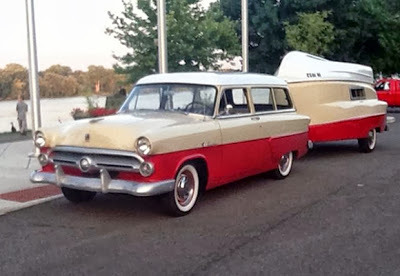 This startling 1952 Ford wagon and Kom-Pak camper unit is for sale on ebay. 38k miles. I guess that's a few hundred every summer.