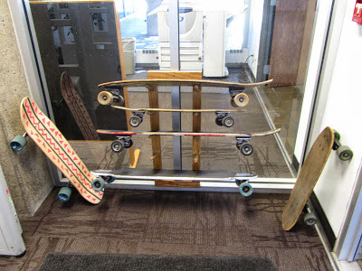 The campus at CC is a few inches from the limestone wall of the Front Range. It's the edge of the high plains, so it's pretty flat, and skateboards are great for getting around. You often see them stacked outside classrooms or the library.