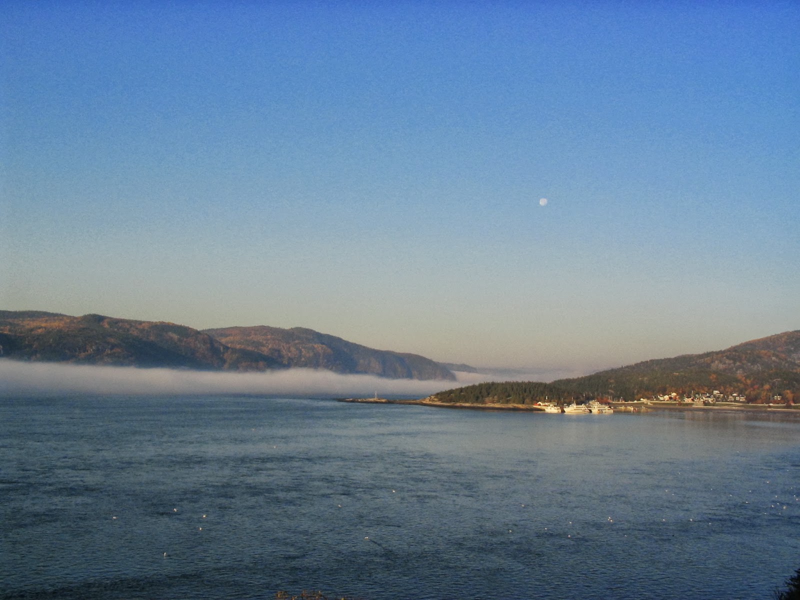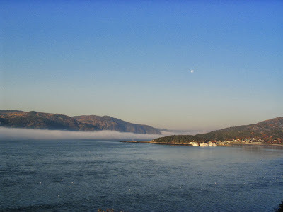 October starts me thinking of home. J'etais nee au Quebec, moi. These photos were taken by Aidan O'Neill and Mary Behrens a few years ago on the Lower North Shore (of the St Lawrence) around Tadoussac, which is maybe the oldest European settlement in Canada. At Tadoussac the deep cold Saguenay R. flows into the St Lawrence, and the churn of waters there makes a feeding ground for white whales--beluga (see the last photo of the set). One of the great road trips in North America follows the north shore of the St Lawrence from Quebec City along the coast of Charlevoix County---to Tadoussac. Then cross over to the South Shore on one of the ferries (Baie Comeau or St Simeon---you'll see whales out in the river) and drive around the coast of the Gaspe peninsula. October is good. Go now. There are caribou in the mountains in the interior of the Gaspé. Doing a magazine story on the Lexus SC430 two-seater a few years back, we drove the car from Maine to the point where the road on the North American mainland littoral stops---which is on the north shore of the St Lawrence, a few miles past Natashquan, and a few miles (kilometers!) southeast of the Quebec/Labrador border.