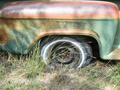 As I was taking pictures the owner came out on his tricycle to say this truck is for sale. Good bone, actually. What's a little surface rust?