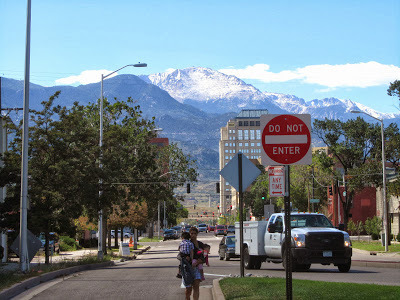 There are a few medium-large buildings downtown but this feels like it ought to be the downtown of a midwestern city, pop. circa 50,000. In fact, it the downtown of a city with a population closer to 500,000. There is a lot empty space and the immediate fringe of downtown, at least to the south, feels like a dying or dead zone, with a lot of empty weedy parking lots and ex-businesses. The whole notion of "downtown" is foreign, I think, to much of the population of El Paso County. I've overheard people, including some bulked-up military types, saying they are "afraid" of downtown. Possibly they are afraid in the same way that I am "afraid" of shopping malls: i.e., the spatial, commerical, and cultural arrangement feels like a foreign inhuman environment, hostile, impossible to connect with. There is a large encampment of homeless people in the one big park downtown. There are a lot of homeless generally in COS. The cost of living and renting around here is not particularly high. I wonder what proportion of the people in the park are ex-military?
