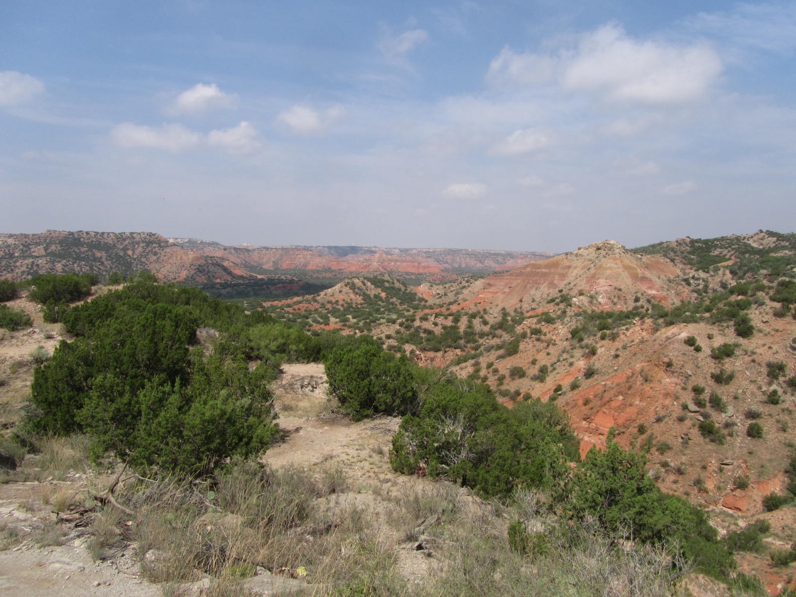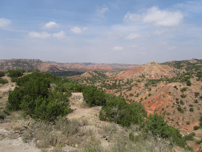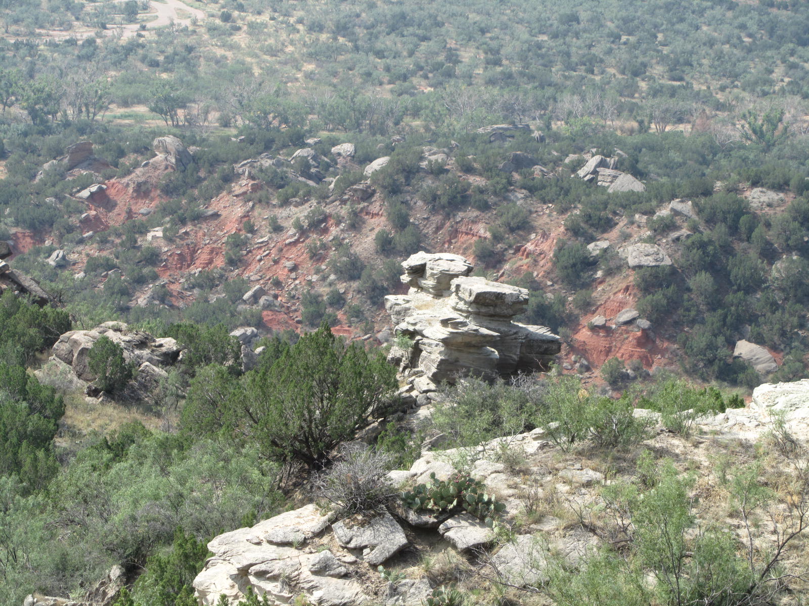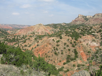 I began with a hike in the Palo Duro Canyon, on the eastern perimeter of the Llano, about fifteen miles east of Canyon, Texas. This rugged red rock canyon is typical of the country at the rim of the Llano, but it is an unexpected surprise after crossing the wide open plains on top of the mesa