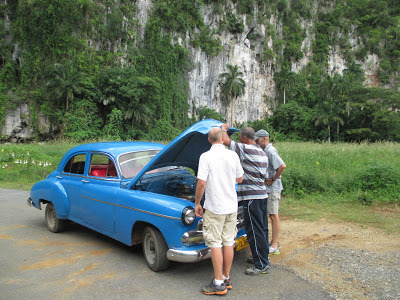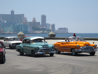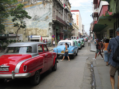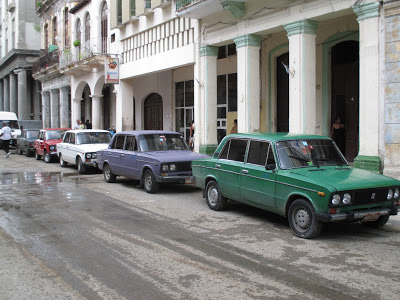 "As you can see most of the rolling stock is either pre-1960 American or pre-1991 Lada. Most of the vintage American cars lost their engines years ago. Many have Asian or European diesels under the hood. The 50 Chevy we are examining had a Volga four cylinder as its power source (an optimistic pairing given the weight of the Chevy and the lack of power delivered by the Russian four). My neck hurt the first couple of days from twisting my head to see all of the remarkable old cars. Cuba = Good cars, music, food, and plenty of decaying infrastructure."--Tim Pearson