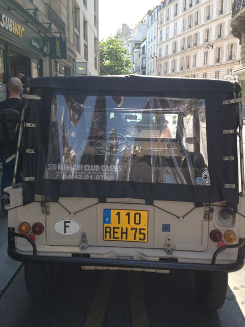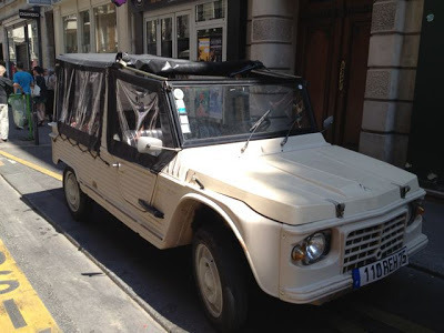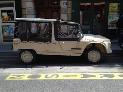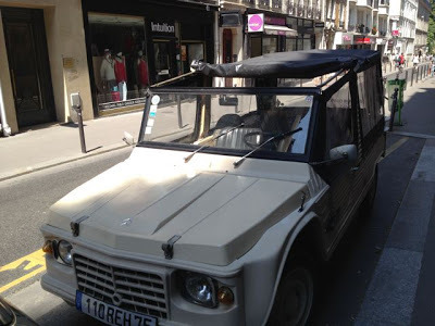 from our man à Paris, Craig Manning:"Off roading French style - Citröen Méhari spotted near Jardins de Luxembourg. Vintage unknown, but if the light beige color is original it is 1978-1987."