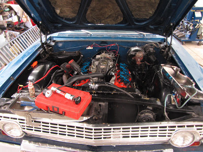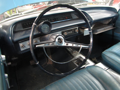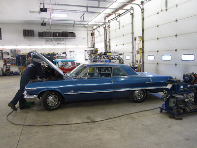 This was being tuned by Jason B. at a certain car shop in Blue Hill. I guess my favorite 409s are the sleepers--you know, stripped-down Biscaynes with dog-dish hubcaps and a bench seat. Cars that look like the car my elementary school principal drove. Caught one of those, a 1964 Biscayne 409, in Colorado Springs last March. But this here Impala SS has the engine and by the time Jason was done with her I'm sure she had the get-up-and-go. A Texas car with a gritty backyard paint job. Looks like it was done on a windy West Texas day.