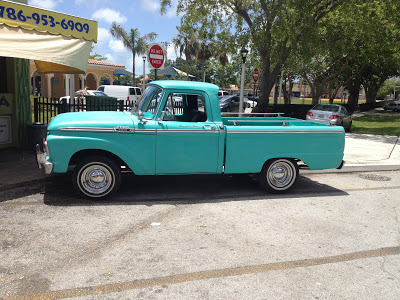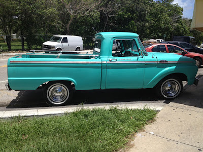 The turquoise suits the town. I'm saying '66, but I'm never able to calibrate Sixties Fords precisely. I like everything but the whitewalls. In Colorado last March, Autoliterate posted another Ford, same era, same color, but an F-250.