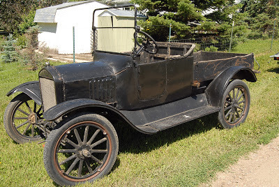 from Alex Emond our man on the high plains: "Any colour you want as long as it's black. This Model T Ford (below) goes back close to a century which is exactly how old Kincaid, Saskatchewan is. A handful of old vehicles were gathering for a parade down Main Street, to mark the village's centennial. Not so old compared to New England, but the bald ass prairie was new country then, being opened up to farmers from Quebec, Europe and some Americans who moved up to Canada. It was nice to see so many people on the main drag ...maybe 200, all told, gathered to watch the parade . Macy's - eat your heart out. Fellini would have loved it!" --AE