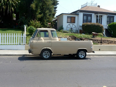 Econolines everywhere. MSM spotted this unit in Benicia, Calif. There was a red one in Gravelbourg, the heart of franco-Saskatchewan, a couple years back. And Nanci Griffith sings Ford Econoline on youtube. And of course Shawn is doing wondrous things with a 1963 Ford Falcon van (passenger version of the E'line) on the Love, Inertia, and the Perfect Stance project.
