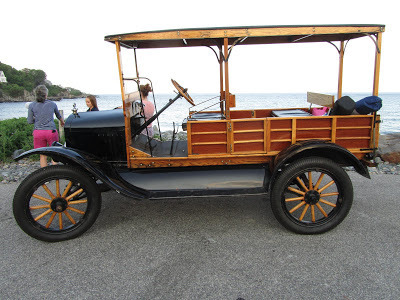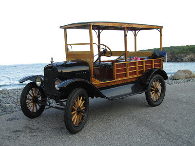We've been doing a lot of woodies lately (hit that link for one example; or just google "autoliterate" and "woodie"--or maybe "woody"). The 1930 Ford was one of my favorites, but I guess this machine is really the place to start. The ur-Woodie station wagon. I'm guessing @ 1916. If anyone has a better idea let me know. At York Harbor, Maine.