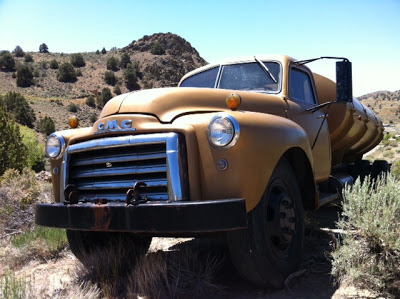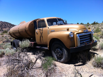 "Lee Saloutos has been poking around down in the Comstock and sent me these two pictures of a suspiciously cherry GMC tanker from his iphone today"