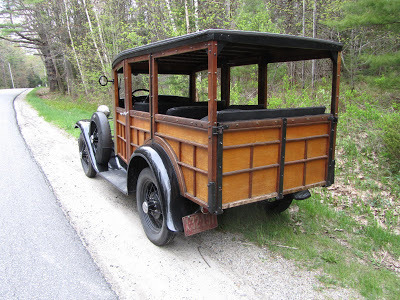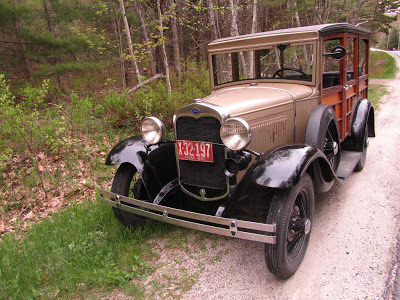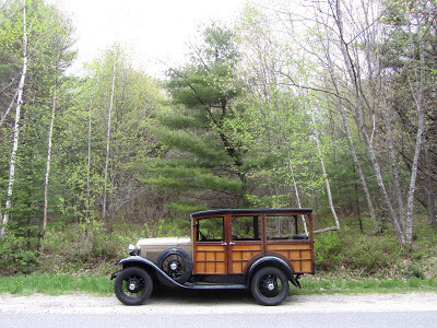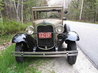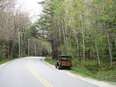 I was driving along a back road in Maine when I came upon this machine parked on the shoulder. No one around. Maybe it escaped from a barn. Old cars get restless in Maine, in the spring. Like the '32 Ford woody we liberated from a barn in Blue Hill last spring.