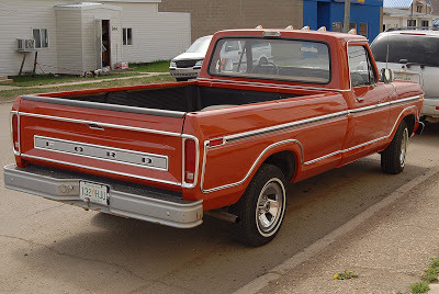 Our man on the prairies, Alex Emond, found this very clean F-150 Ranger in Maple Creek, Saskatchewan, not far from the Cypress Hills. I like everything about it except the wheels and those whitewalls. Looks to be the same (factory?) orange as Clementine, a 1971 F 250 whose Montana-to-Massachuseets roadtrip was posted on AL last year.
