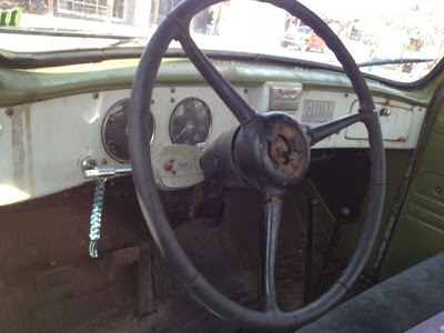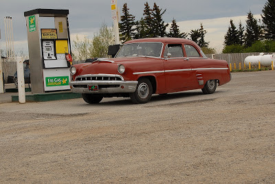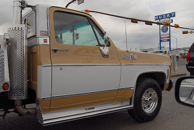 "I was pulling to this filling station at Cluny, Alberta on my drive over to Ponteix and here was this late 50's Mercury. Nothing fancy but a fine, handsome sled nevertheless. It looked like the restoration was decades old but she just keeps purring along. I took these shots from the driver's seat, otherwise I would have missed it. (Ed. note: Autoliterate found another Monarch in Vancouver last year.)"The super-clean diesel was at a red light, I got the shot from 6 feet away. The sound of the "stack" was muy macho. Later, AE"