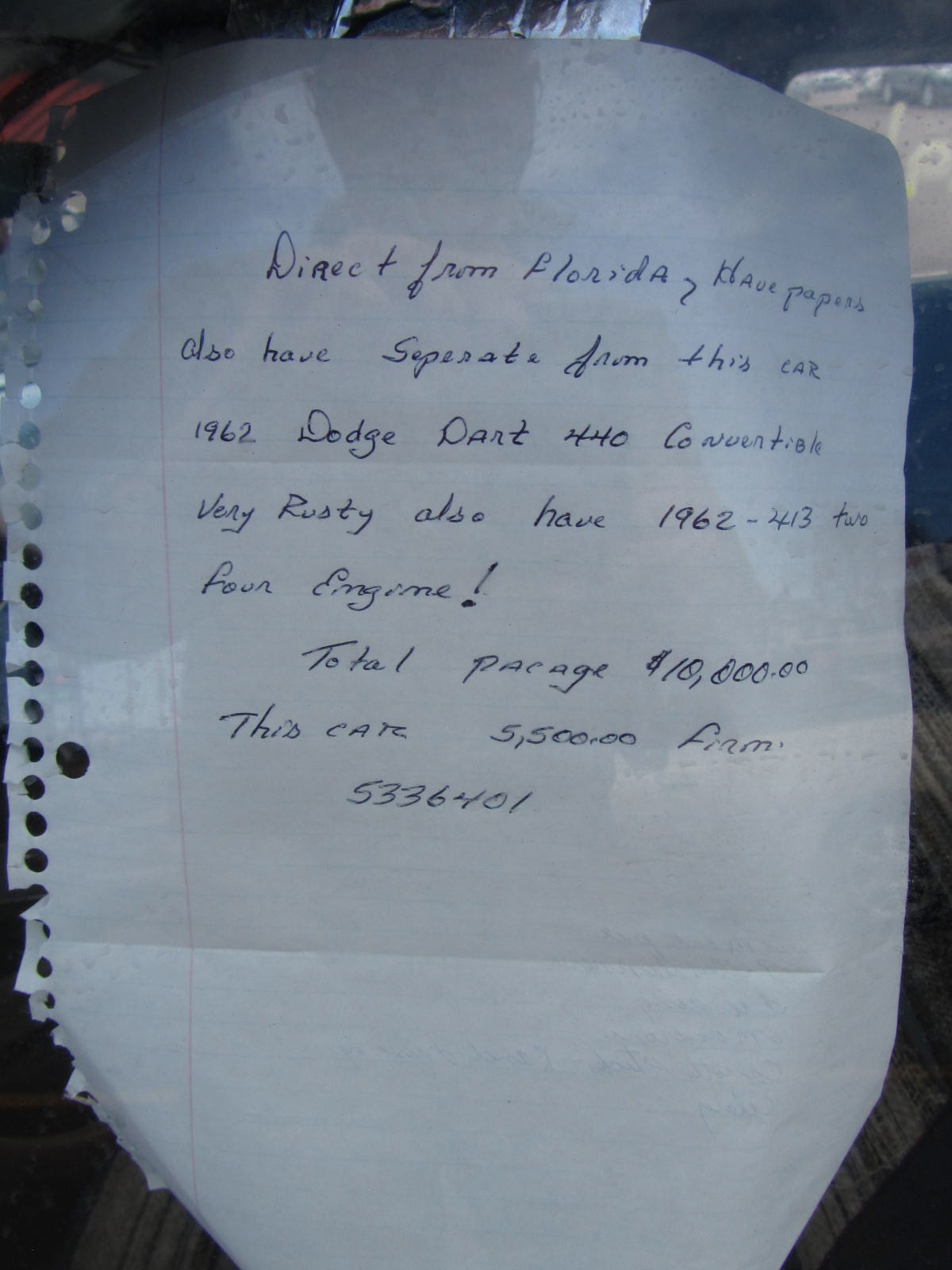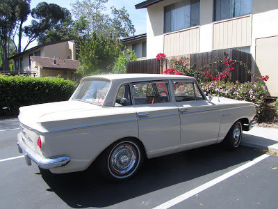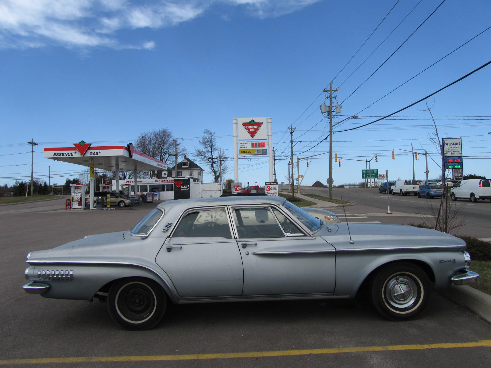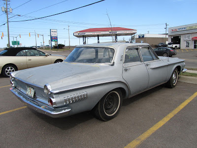 This car has Florida plates, and spent some time on a military base in Hawaii, but I saw it for sale in Shediac, New Brunswick, on the Acadian shore. Those Chrysler Corp. cars of the early Sixties were remarkable-looking beasts. The designer, legendary Virgil Exner, king of fins, called the post-1962 cars "the plucked chickens" after his original concepts were downsized in a haphazard way by scared suits at Chrysler.