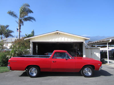 We're back in Maine, still California dreaming. Spring is looking a little....terse and unforgiving, here on the Downeast coast. But there is plenty of light, and with some good rains, the green will grow in Maine just as it's fading out in California. H and I arrived at Logan Airport in Boston about an hour after the insane bombings....Patriots Day in Mass.,. As our bus driver noted, the highways are usually empty on P.D., but because of people exiting the city,roads yesterday were jammed. The news was sickening. Hope they catch the creeps, and fast.Meanwhile we are reminding ourselves of California light with this I'm-guessing-1967 El Camino.