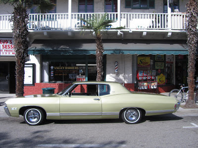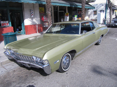 Auto standards here on the South Coast are pretty high. Admirable cleanness and clarity. No gewgaws. I screeched to a stop when I saw this very clean 1968 Impala parked in front of the owner's barbershop.