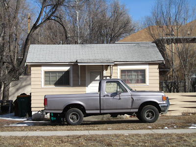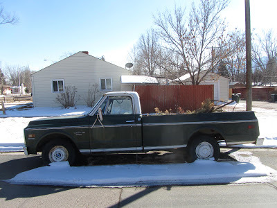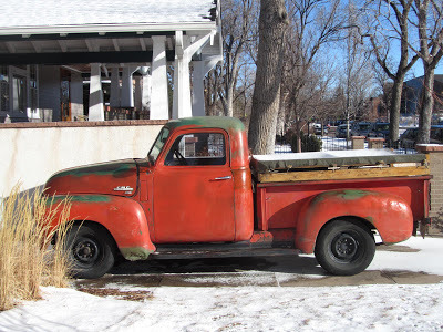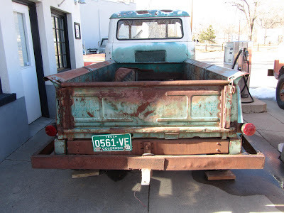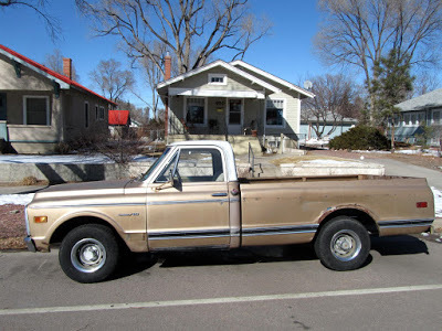image ©2013 Jarrod McCabeThis (below) is the truck I posted last week, still for sale at Ed's Automotive here in Colorado Springs. I took a couple of shots outside to give you a better sense of the truck's gestalt. Those wheels are certainly ugly, and the tires too small, but this truck might clean up well. Check the earlier post for more info. I just met another old truck guy in the Downtown Barbershop here in COS. We agreed that it was just much more fun to buy basically solid, undistinguished old western trucks for a couple grand, clean them up, tune them up, learn about carburetors and such, and just plain drive 'em--than it was to buy/drive anything newer. Driving them is the key: $50,000 trailer queens don't interest me much, even if I could afford them, which I can't. Hell, you can own a fleet of the sort of old trucks I like for the price of one Kia.