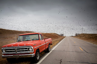 This truck reminds me of the orange Ford pickup (it was an F-250) that photographer Jarrod McCabe drove from Montana to Massachusetts last winter. See some of those images (below). You can track that epic in a series of AL posts starting here. One of the image from that trip is the cover of Travelling Light, a collection of my short stories which House of Anansi brings out--Canadian spelling and all--in May 2013.