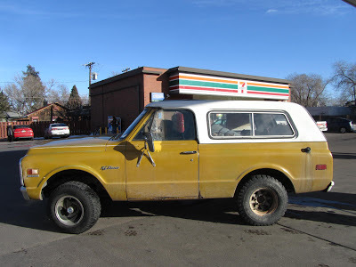 Career army. Bought the Blazer brand-new in '72, just back from his fourth Viet Nam tour. The factory color was called 'Ochre". The truck's totally original, except the gas cap and a four-barrel carb. "All the ding, dents and deer blood, man--that is my history. Know what I'm saying? Why would I want to paint it?"