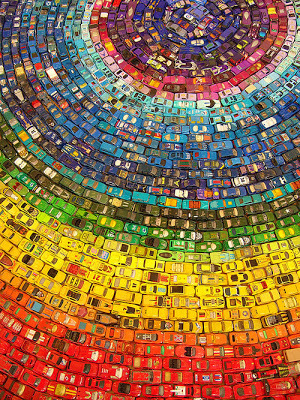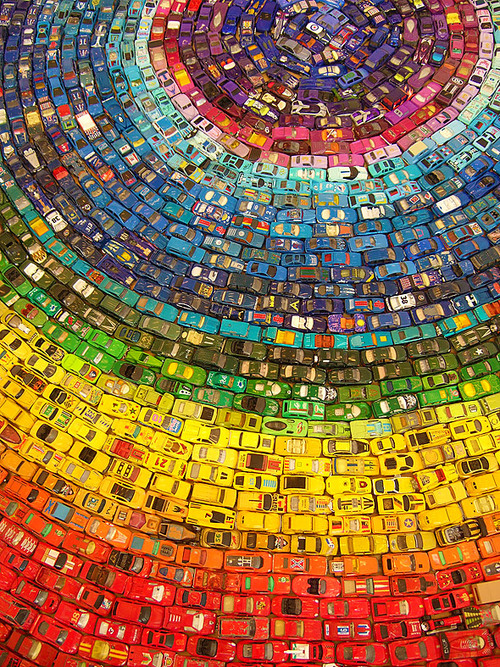 The Toy Atlas Rainbow is an installation of 3000 old toy cars by UK artist David Waller. (I found it via BB and This Is Colossal)