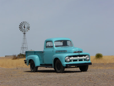 If you follow this blog you may know that Autoliterate has a thang for Ford trucks of this era: see the posts "Trucking With Basha" and Henry with the F-2, featuring a robin's-egg-blue West Texas F-2.
