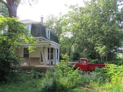 parked beside a mid-19th century frame house at Grand Pre, near Wolfville, N.S. Wilhelmus Peters, the Nova Scotia farmer who owns the truck, is restoring the house.