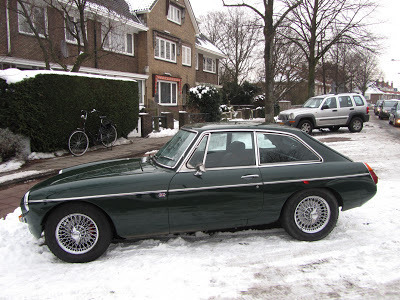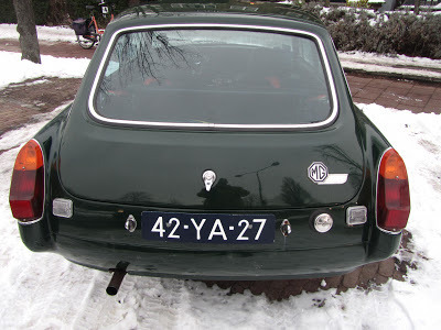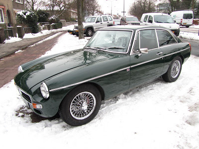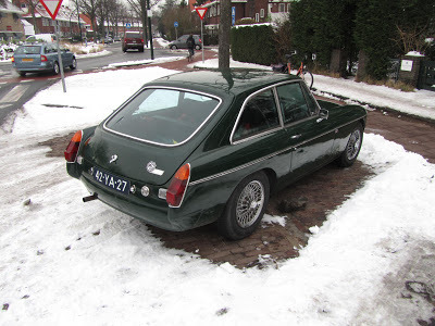 These cars lost their blythe spirit when they had those monster black bumpers slapped on them in 1974. This car which I'd guess in 1967, would have had the slender chrome bumpers, but even these have been deleted, which makes the car look ever more nimble. MGB-GT was an unfortunate name; it sounded like an acronym for one of the secret police services in the Stalin-era Soviet Union. The owner of this car, I notice, has gotten rid of the "BGT" on the badge in back, leaving just MG. That British Racing Green always works. There's a story called "smell of smoke" in my upcoming story collection (Travelling Light, House of Anansi, May 2013) that is about learning to drive in an MGB, and a few other things, too.