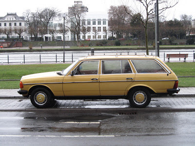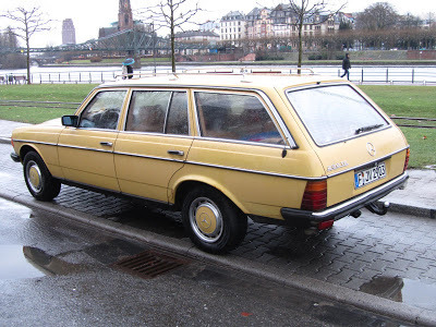 I've never owned a Benz but I'd like to one day: nothing fancy, maybe from the 80s, low-mileage, diesel, durable. Like this 230 TE wagon I saw along the Mainkai here in Frankfurt.
