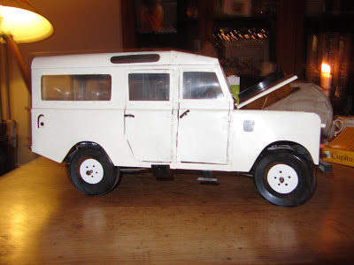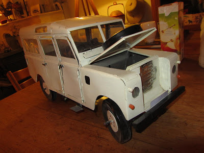 And they have these wonderful L-R's made by African craftsmen, using scrap metal, shoe polish tins, etc. The white L-R is from Kenya, the green from Mozambique.