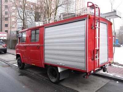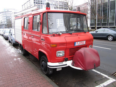 I noticed this decommissioned fire department truck in the Frankfurt suburb of Niederrad. Couldn't get much boxier, could it? But boxes make sense for hauling stuff. My son has a toy one of these. I find something very appealing about the no-frills shape of medium-size Mercedes truck and vans. Form follows function. Like the 207D van posted on AL a while ago. Not sure of the era of this unit: late 1980s, perhaps?