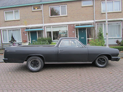 I saw this machine parked on the street in Wassennar NL a while back and met the owner today. He does the work himself and has a couple of different carburetors that he swaps in and out depending on the season. It has a 350 motor and a 4-speed out of a Corvette. I like the flat black which he says is a special euro-truck paint.