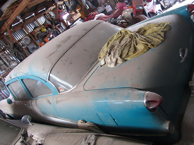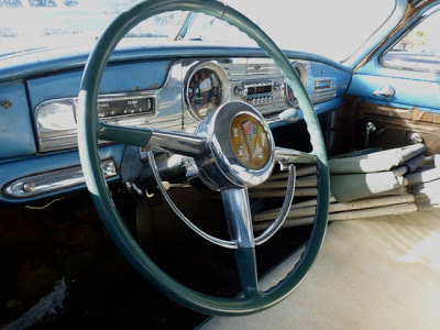 "Meanwhile, up at the local muffler shop, where I'm having the pipes on the '45 redone before asphyxiation triumphs...a 1950 Hudson, Commander, I think he said, runs and drives; $3500...I'm not tempted, but it would make some crazy person very happy I'm sure..."-MSM
