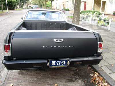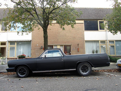 So far the coolest, barest Chevrolet I've seen in the Netherlands. Dutch people rarely deliver the American car aesthetic in such a satisfying way, it seems to me. American cars & trucks over here are usually organized to send out a message of right-wing insouciance. It's the Harley-Davidson spirit. If you run any kind of big US car or truck in the Netherlands you're sending out a slightly archaic, don't tread on me, greying-braids-flapping-in-the-wind kinda vibe. Or that's how I'm reading it. Don't know how they sustain the rebel attitude with gas at $10 a gallon but that's the price of freedom, I guess. Sure liked this cool, bare, slightly ratted El Camino, though. But i you're going to operate an El Camino in the Low Countries, you had better make sure all the drain holes are operational, or you'll end up with a duck pond back there.