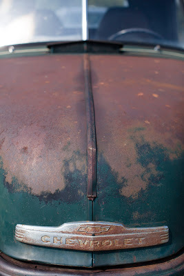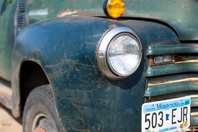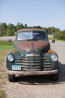 "1951 Chevrolet found in Emily, Minnesota. couldn't find the owner, just his wife who said it was a '51 but didn't know the capacity of the truck. I was intrigued by what looks like a manually operable air intake right in front of the windshield." --JM