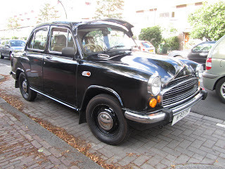 It's an Ambassador, made by Hindustan Motors in India. This model has an Isuzu engine. They must be one of the most popular cars in the world, but I've not been to India, and had never encountered one before. Based on an English Morris from 1957, Ambassadors have been produced in India for the past half-century. It's a handsome car. I want one. The only thing that didn't appeal were the cheesy, stick-on badges.
