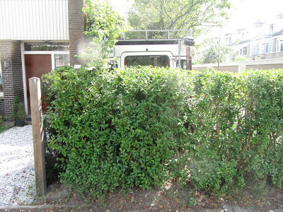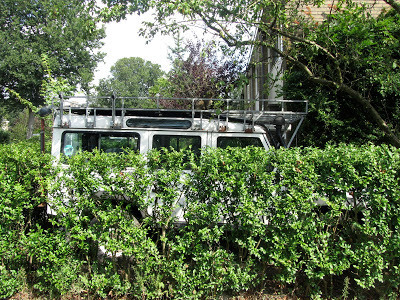 Our neighbors here in civilized little Wassenaar work for the Dutch foreign service, and keep their Land Rover, and their memories of Africa, squeezed into the hedged garden beside their house while they endure a home posting. They'll have to bust out eventually. The machine has certainly seen wilder days--their last posting was Namibia, before that Kazakstan and Sri Lanka. Expensive Dutch road tax keeps the LR in cold storage here, though Wassenaar is such a prosperous town that you see a lot of LR's cruising the handsome little streets. Conspicuous vehicular consumption, I guess. Reminds me of the Range Rover moment in Montecito, twenty years ago.