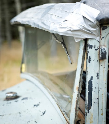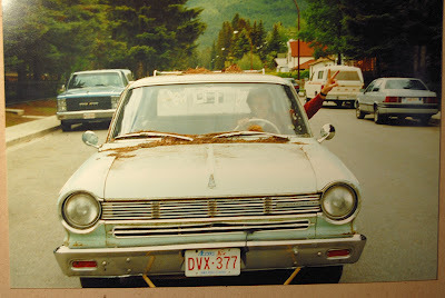 Autoliterate: "I remember that chrome salesman marching off to work on the Rambler. Do you have a photograph of him on the car?"AE: "Frayed knot , Peter. I'll send you a shot of it's last voyage ...being towed by Blake out to the compound [in Banff]. It wasn't running or registered and the place where I had been storing it kicked me out ...I was broke and decided to let it go. That was a mistake, but we all live with a few regrets. Wish I still had it. I had just removed the ornament."