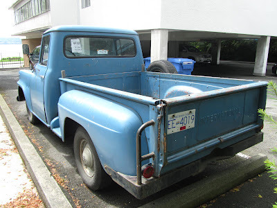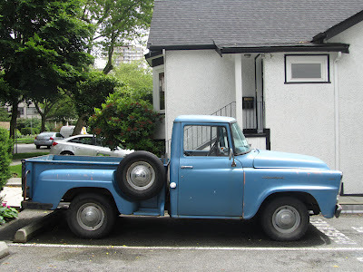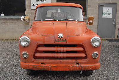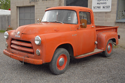 I'm in love. Giddy as a schoolgirl. I know this old Dodge...it belonged to my deceased (by about 8 years)neighbour, Art Homer. Art was an Englishman, a bachelor, who worked as a painter for Parks Canada. Kind of an introverted curmudgeon unless you knew him and then he was the salt of the earth. Anyway this truck outlasted him and then somebody inherited it and did a few little things to it to get it safety-checked and now I see it is for sale. So, I'm going to have to look into this... I'll get on it tomorrow. Despite my abject poverty I have to find out the price. It's a sweet truck even if it is a little long in the tooth. Not that far gone. I mean, it's freakin' Job-Rated!---AE