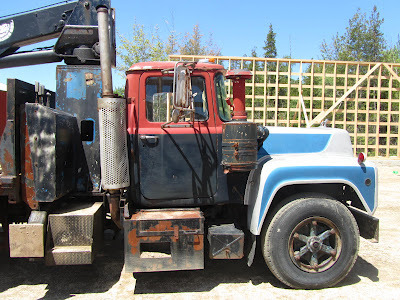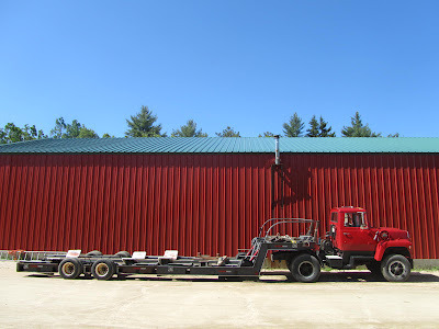 Bill's boom truck is usually down at the Sedgwick Town Landing, stepping masts, but he is putting up a new boat shed this week--he works fast--so he's using it at the Yard.