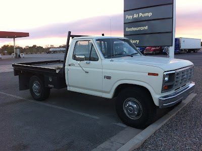 This from Don Culbertson, our Franco-Texan West-of-the-Pecos correspondent:"Hou la la, ca, c'est une work truck! Found this treasure outside of Cloudcroft, New Mexico on a road trip. 1982?or thereabouts ford 250, the ranch bed is newer than the truck: welded flatbeds are a recent trend in farm/ranch trucks."