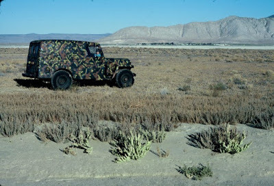 from our Nevada correspondent:"October 1978; my 1964 Willys 4x4 panel truck outside Gerlach, NV. Last year of the old body stye, it had the Buick six that was to go into the super-ugly Wagoneer that debuted the next year, which made it quite quick. Warn hubs, overdrive... it woulda/shoulda been a keeper but I rolled it on the Bay Bridge in 1979....thirty four years later I'm 20 miles the other side of that mountain behind Gerlach and the kid in the window is about 20 miles SW of Kandahar, Afghanistan until September." --MSM
