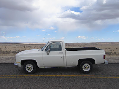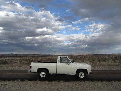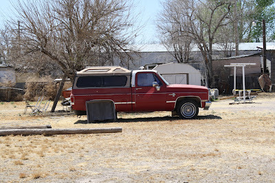 I like June, and appreciate the wild green of it here in Maine. Spent 15 years in Santa Barbara where June is a gloomy month, often. No rain, lots of white-sky fog: what they call 'the marine layer'. Not what we in downeast Maine think of as fog. Here fog is grey cottony-misty stuff floating over the road, smelling of Fundy, and everyone drives with headlights on. Maine June: shedder lobsters, poppies going wild, lupine, jungle green everywhere. Then I started thinking of last winter in Marfa, where the light is so sharp, the air so dry, and the Detroit iron (mostly) rust-free.